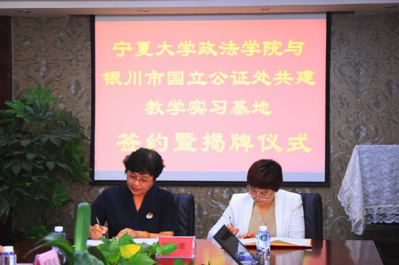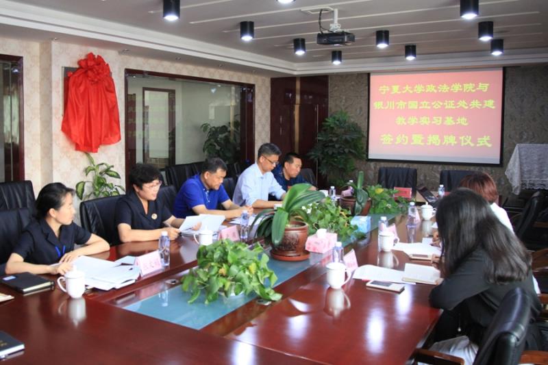 2017年9月19日,437437必赢国际网址政437437必赢国际网址与银川市国立公证处共建教学实习基地签约暨揭牌仪式在银川市国立公证处举行。自治区司法厅律师公证处鹿守岩调研员、银川市司法局李卒副局长、银川市国立公证处于洧主任、银川市司法局公证律师管理科高国兴科长、政437437必赢国际网址潘瑞书记、政437437必赢国际网址胡世恩副院长、法律系张弛主任以及国立公证处各业务部门负责人共同出席了本次活动。