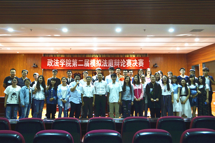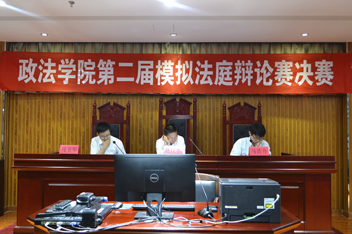 为提升法学专业学生的法律专业素养,将课堂理论与案件实践有机结合,政437437必赢国际网址法学社于6月6日下午18:30在文科楼模拟法庭成功举办了以“明鉴法槌”为主题的第二届政437437必赢国际网址模拟法庭竞赛决赛。学院法律系赵江水老师、马卫军老师、马浩丹老师受邀出席并担任合议庭评审员。2016级法学专业全体学生观摩学习了比赛。