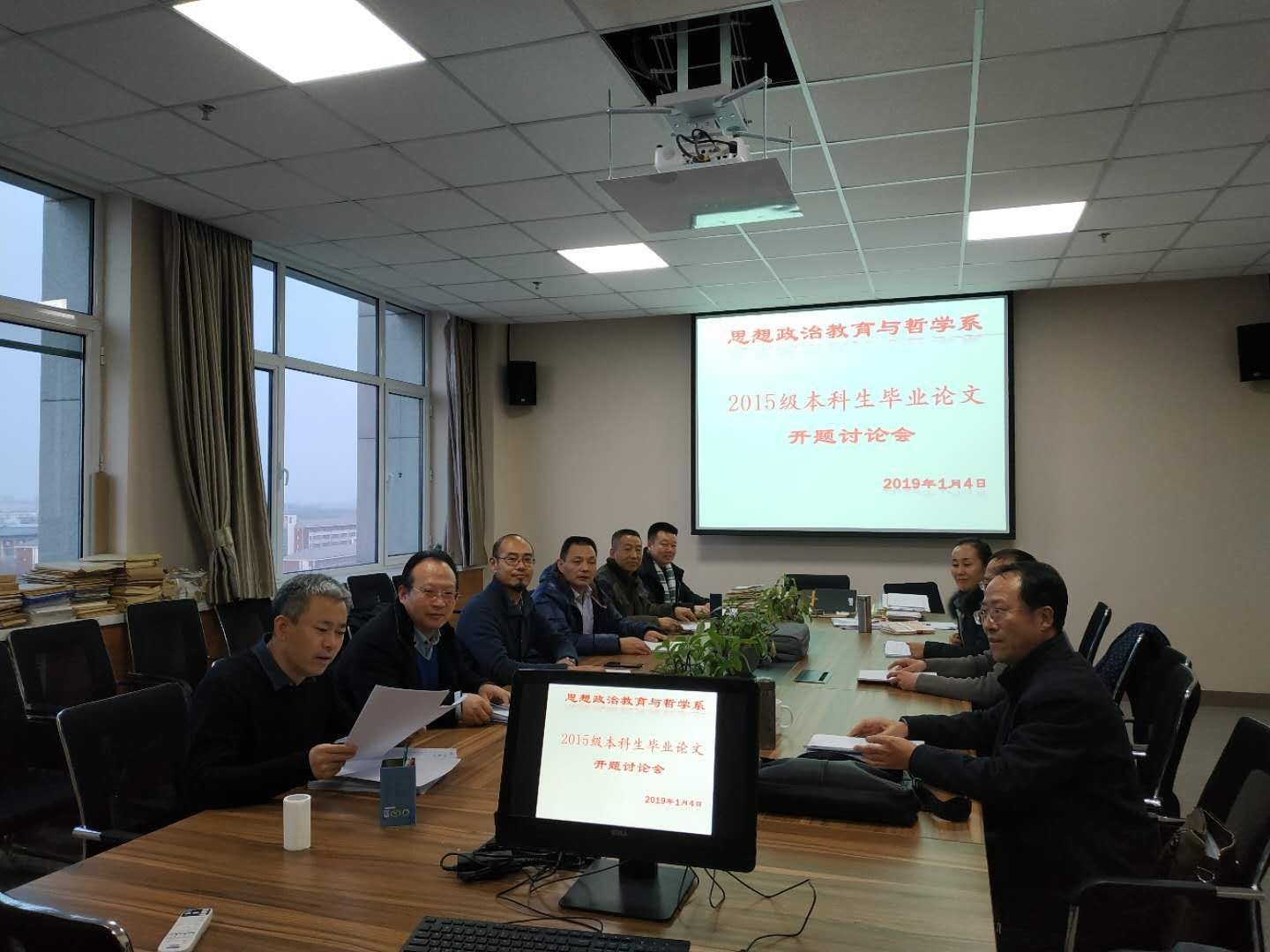 为保证毕业论文撰写质量与进度,确保毕业论文选题方向、范围符合专业要求,1月4日下午,思想政治教育与哲学系举行2015级本科生毕业论文开题报告会。报告会分三个会场,九位教师担任评审。
