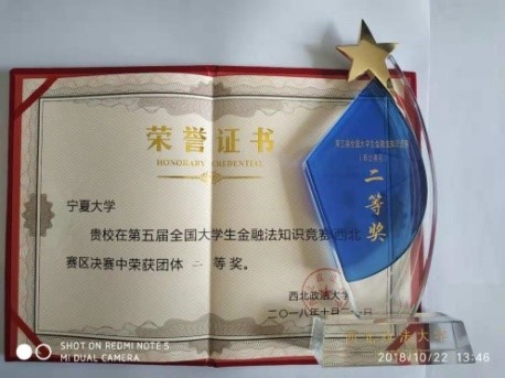 在10月20日结束的第五届全国大学生金融法知识竞赛(西北赛区)中,由法律系曹慈义老师担任教练,法学专业2016级7名同学组成的437437必赢国际网址代表队获得第二名的好成绩。本次比赛由西北政法大学主办,参赛队包括兰州大学、西北大学等西北地区知名高校。