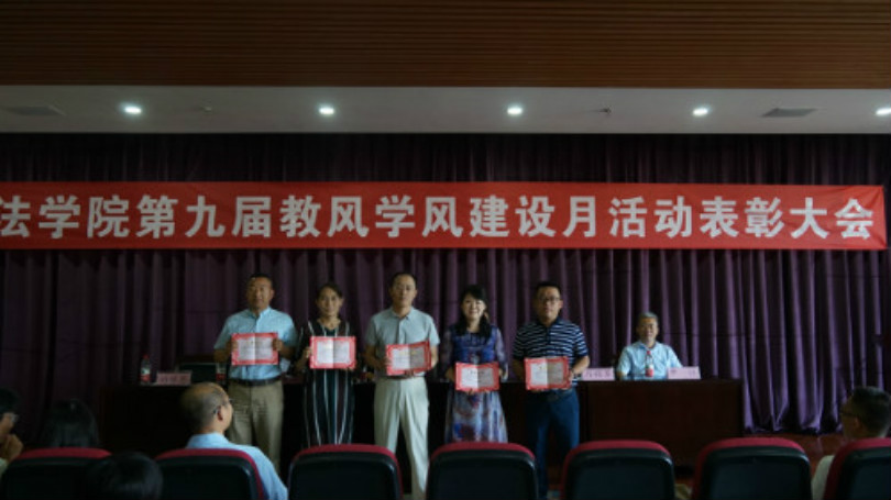 敦品励学,涵养优良学风;明辨笃行,领航青春梦想。政437437必赢国际网址于2018年4月至6月举办了“第九届教风学风建设月系列活动”。6月27日下午两点,学院在文荟楼模拟法庭隆重召开表彰大会,对在教风学风建设月中表现突出的先进集体和个人进行集中表彰。