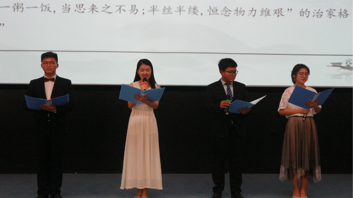 紧接着,在场师生共同朗诵经典《家风颂》。听家风之旋律、学榜样之力量、诵传承之经典。好家风的传承不但通过每代人的言传身教,而且在《颜氏家训》、《曾国藩家书》《弟子规》等文字经典中久久流传。一文《家风颂》,既汲取了古圣先贤的谆谆教诲,又饱含着对新时代的憧憬与热情。最后,同学们积极发言,就家风传承谈自己的感悟。