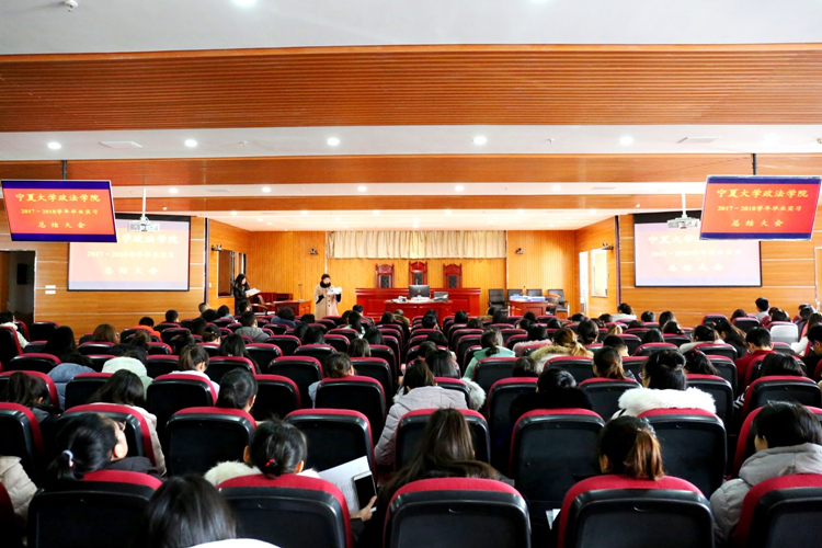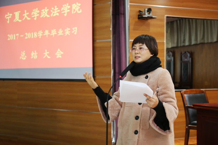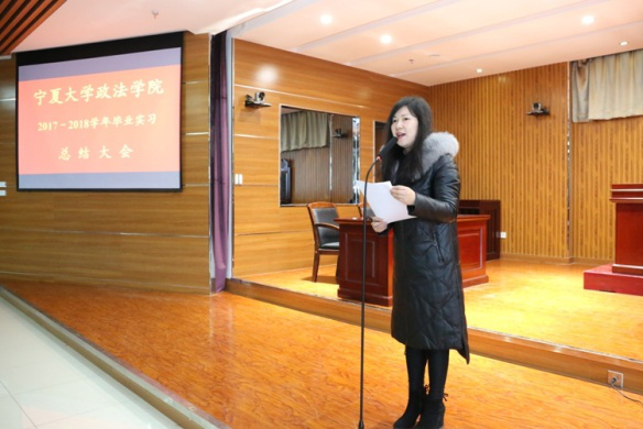 2018年1月2日上午,437437必赢国际网址政437437必赢国际网址在模拟法庭召开了2017—2018学年毕业实习总结大会,学院党委书记潘瑞,副院长胡世恩,教学办公室主任武玲娥,三系主任以及四个专业的实习指导教师和2014级全体实习生参加了本次大会。大会由胡世恩副院长主持。