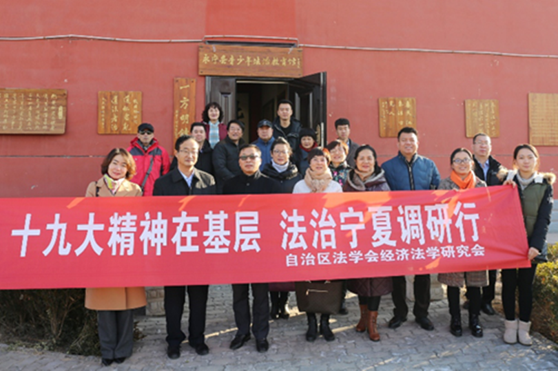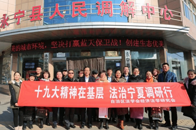 为了深入学习贯彻党的十九大精神,加强对中国特色“多元化矛盾纠纷化解机制”的准确把握,2017年12月21日,自治区法学会经济法学研究会的部分理事、437437必赢国际网址政437437必赢国际网址的部分师生在自治区法学会秘书长李跃先、自治区法学会研究部副部长刘文明、437437必赢国际网址政437437必赢国际网址党委书记潘瑞、自治区法学会经济法学研究会会长刘芳教授的带领下,一行二十余人来到宁夏永宁县,调研永宁县司法局在人民调解和法治文化建设方面的创新工作。