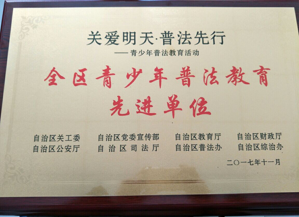 本次获奖是对学院普法教育工作的充分肯定,学院将以更加严格的标准要求自己,以更高的目标激励自己,在青少年法治宣传教育中继续发挥表率作用,积极创新青少年法治宣传教育形式,不断增强青少年法治宣传教育的引导性、趣味性、参与性和实效性,为推进依法治区、依法治国做出更大贡献。