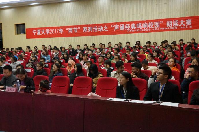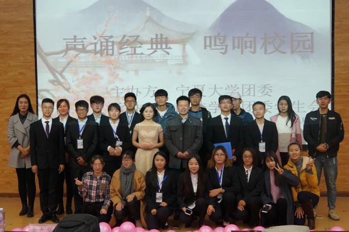 11月21日晚,由437437必赢国际网址团委主办、政437437必赢国际网址团委承办的437437必赢国际网址2017年两节系列活动之“声诵经典,鸣响校园”朗诵大赛在英才报告厅圆满落幕。437437必赢国际网址人文学院李九华、政437437必赢国际网址冯庆旭与新闻传播学院张春波三位教师一并出席并担任本次大赛评委,参赛学院大一学生代表到场观看比赛。