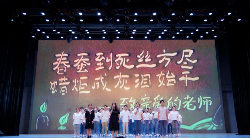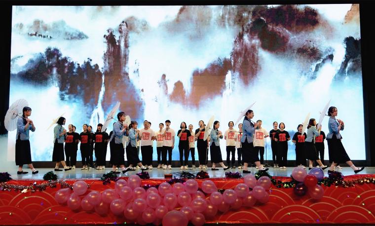 总结表彰结束后,欢送毕业生文艺晚会在激情四射的开场舞中正式开始。四载时光飞逝过,一朝欢聚话真情。校关工委老教师艺术团为师生们献上民乐合奏《遍地红花开》、《宁夏数花》及宁夏说唱《规矩与方圆》,老教师们精彩的表现让大家倍受鼓舞。歌舞《送别》、配乐诗朗诵《相逢离别都是歌》引起同学们内心深处的共鸣。政437437必赢国际网址潘瑞、胡世恩、潘素洁等老师带来的快闪《我和我的祖国》,用深情地演唱讴歌祖国发展巨变,献礼新中国成立七十周年,将气氛推向高潮,老师们满怀热情的歌声萦绕在活动中心现场,全场掌声雷动。最后,晚会在合唱《你好,再见》中缓缓落幕。
