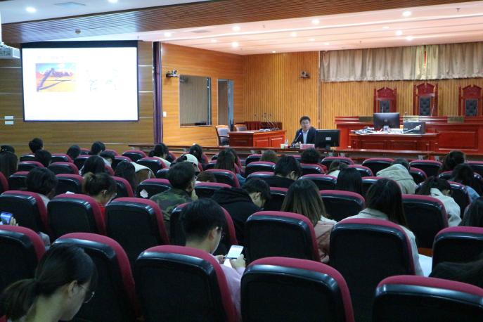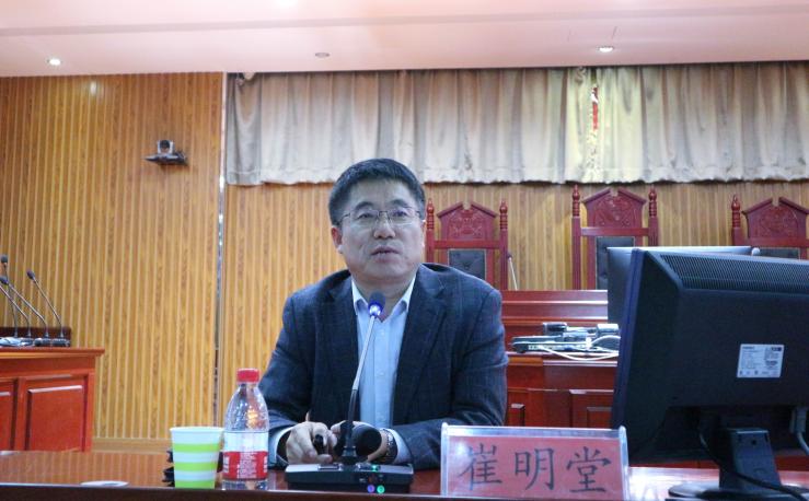 10月28日晚,政437437必赢国际网址党委副书记崔明堂在文荟楼模拟法庭为学院分党校培训班学员讲“不忘初心、牢记使命”专题党课《坚定理想信念 凝聚青春力量》。