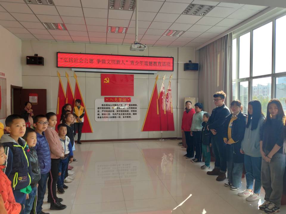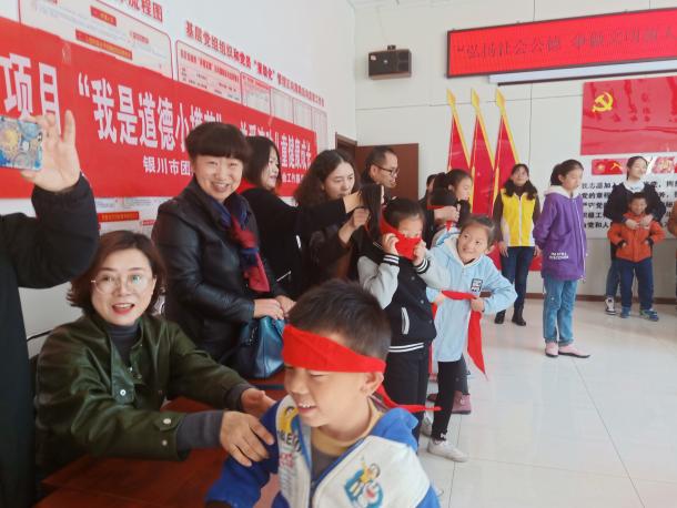 活动围绕“弘扬社会公德,争做文明新人”的主题开展了星光大道、同舟共济、盲人与哑巴等三个体验式互动游戏。在游戏中,学生党员和小朋友们同心协力完成游戏中的各种任务,挑战不一样的合作方式,老师们则在场下帮孩子们做游戏准备工作,指引孩子们以最正确的方式完成游戏。