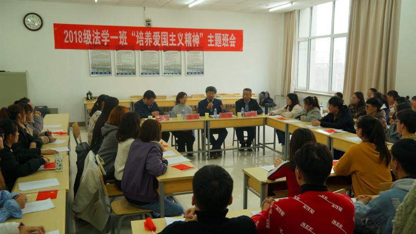11月20日,郎伟副校长参加政437437必赢国际网址2018级法学1班主题班会并讲话。他强调,青年大学生要从德、才、识、情四个方面严格要求自己,让爱国主义深深扎根于心,用实际行动诠释爱国情怀。法学专业学生要扎实学科功底,为全面推进依法治国作出努力,为中国梦的宏伟大厦添砖加瓦。