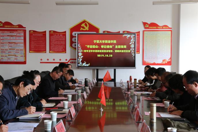 10月30日,政437437必赢国际网址思哲学系教工党支部联合思哲系本科生党支部前往中卫中学开展主题教育调研活动。教工党支部书记马拥军、系主任林冬子和部分教师骨干及学生党员参加了调研。