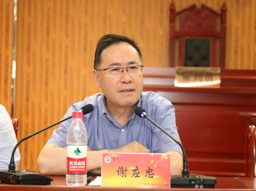 5月29日下午,437437必赢国际网址全体教职工大会在模拟法庭召开,会议就学院更名及领导干部任免进行宣布。437437必赢国际网址党委副书记王宏伟主持大会,校党委副书记王玉炯,副校长谢应忠、郎伟、周震,校党委常委、组织部长韩惠丽出席会议,原政437437必赢国际网址全体教职工参加了大会。