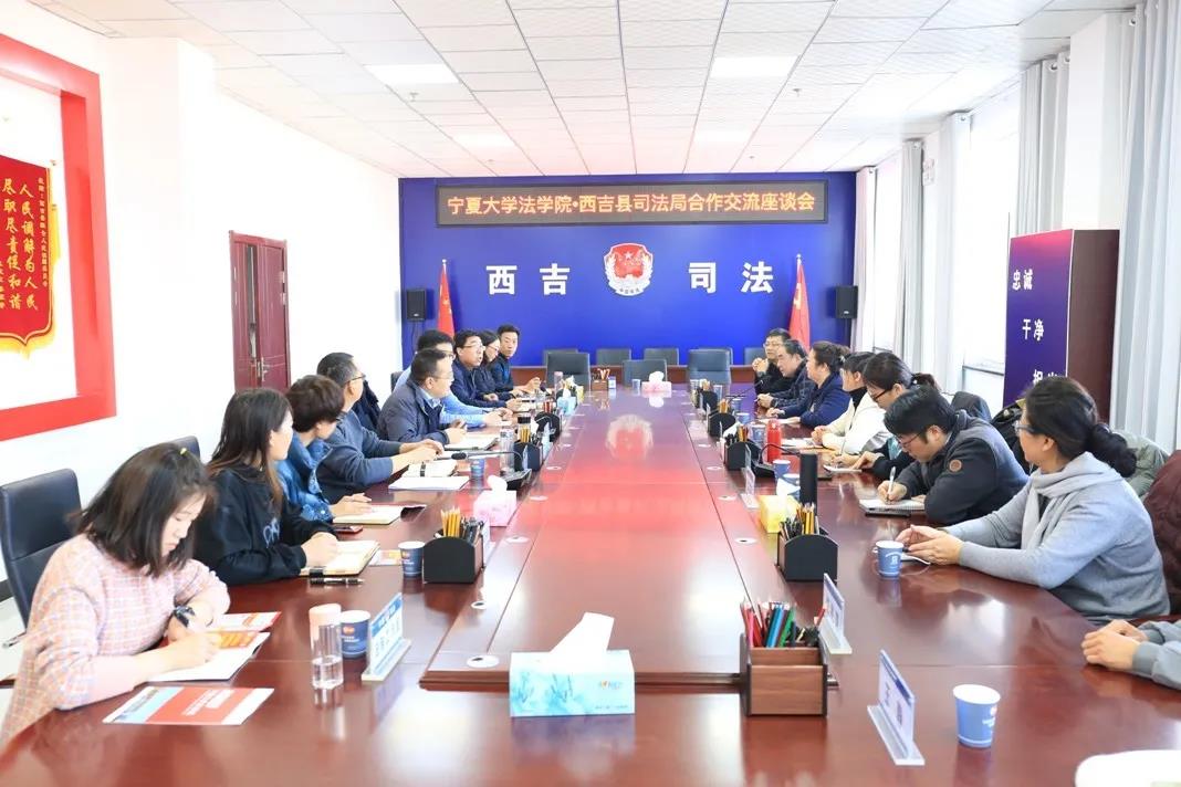 12月7日上午,在党委书记潘瑞的带领下,437437必赢国际网址师生团队前往西吉县司法局进行交流座谈。会上,双方具体就协同编制西吉县“八五”普法工作规划、校地联合推进法治宁夏与县域法治建设、共享437437必赢国际网址法科优质教育资源等事项进行了深入协商对接。西吉县司法局马国荣局长、黄达伟副局长、教育体育局黄越副局长等领导出席座谈会,必赢潘瑞书记、杨扬副书记、法律系主任张弛、法律系教师代表滕明荣、刘淑媛、张驰、马卫军、江兆涛、王静等老师参加了座谈会。