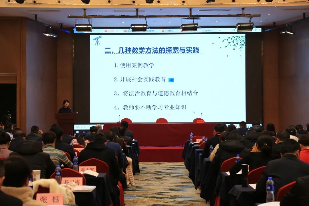 吴忠市第四中学杨灵梅老师带来《初中法治教育教学方法的探索与实践》主题报告。基于教学实践与问题,分析了教学中效果较好的教学手段,涉及案例、社会实践、更加有效的师生互动,提倡法治教育与道德教育有机融合,也针对教师在法治教育中的知识短板提出建议,对法治教育工作具有很好的启发。