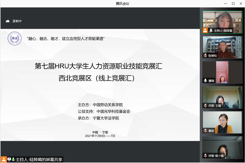 2021年11月7日上午,由中国劳动关系学院和中国光华科技基金会主办,437437必赢国际网址承办,437437必赢国际网址创新创业学院协办的第七届中国大学生人力资源职业技能竞展汇西北竞展汇在437437必赢国际网址正式举行。来自西北地区11所高校44名选手各个有备而来、沉着应对,突破疫情障碍,在云端开展了紧张有激烈的专业竞展。