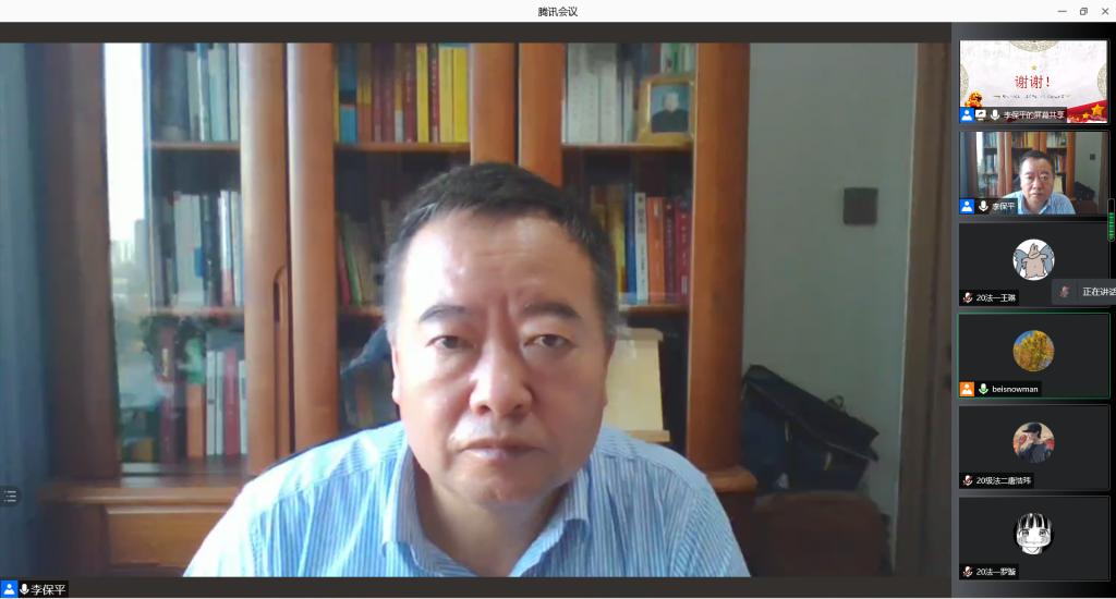 为深入贯彻落实习近平法治思想,全面做好法治人才培养工作,提高法学专业本科生思想政治素质和法治素质,437437必赢国际网址于11月3日下午组织开展《习近平法治思想概论》课程第二讲“习近平法治思想的重大意义”线上学习。本次讲座由宁夏社科院法学与社会学研究所所长李保平研究员主讲,437437必赢国际网址副院长胡世恩、法律系主任朱蓓予和部分法律系教师出席,部分二百多名法学专业本科生、研究生参加学习。