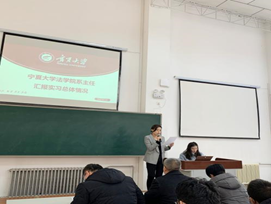 实习大会上,朱蓓予首先就法律系学生的实习工作进行了简要总结,之后行政管理与社会学系教师雷安琪对行社系学生的实习工作进行报告。两位老师指出,本次实习,学生全部完成了实习任务。在实习过程中能把在学校学到的理论知识在实践中加以运用,做到了理论联系实际,并且取得了较好的成绩。学生能够在实习过程中对不懂的东西及时虚心请教,这种谦虚求学的学习态度以及认真负责的工作态度得到了指导老师的认可和单位领导的表扬,并取得了良好的社会效应。同时,个别学生的实际工作经验不足,专业技能还相对薄弱,实践操作能力还有待于进一步提高。学院高度重视本科生毕业实习工作,强化实习动员、中期检查、成绩评定、总结表彰全过程管理,胡世恩代表学院向到会师生汇报了毕业实习中期检查的相关情况。之后,法学专业、行政管理专业、社会学专业六位优秀实习生对自己的实习工作进行了汇报。虽然法律系和行社系工作各有不同,各位同学在实习中都增长了技能,学到了知识,丰富了见识,收获了经验。学生工作汇报结束,法律系刘芳教授、行社系倪富静老师作为教师代表也作了精彩发言,肯定了学生在实习期间取得的成绩,同时也寄语学生奋发拼搏、继续努力。