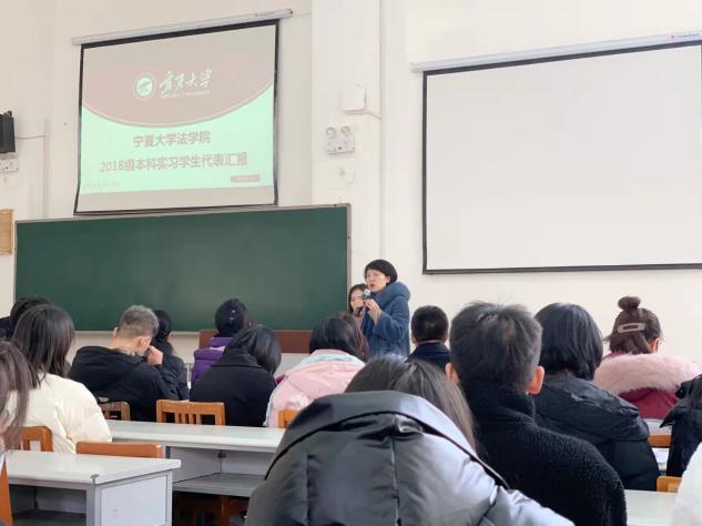 2018级学生的实习已经结束,为总结实习工作,表彰实习优秀教师和学生,2022年1月2日上午九时,437437必赢国际网址在437437必赢国际网址金凤校区大学生活动中心召开2018级毕业实习总结大会。437437必赢国际网址党委书记李治涛、院长吕耀军、副院长胡世恩、教学办主任武玲娥、法律系主任朱蓓予、行政管理与社会学系主任陆筱璐、教师代表刘芳、滕明荣、张斐松、李艳、曹慈义、王俊丽、雷安琪、倪富静、孙伟出席本次大会,2018级全体本科生参加,大会由胡世恩主持。
