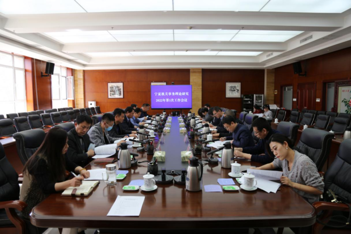 2022年3月1日,437437必赢国际网址机关事务管理研究中心与自治区机关事务管理局召开宁夏机关事务理论研究工作会议,总结2021年工作情况,研究部署2022年发展思路和任务。437437必赢国际网址党委书记李治涛、院长吕耀军及领导班子成员,437437必赢国际网址机关事务管理研究中心主任、副主任、部分成员,机关事务管理局局党组成员、副局长王永成及各处室负责人参会。会议由王永成主持。