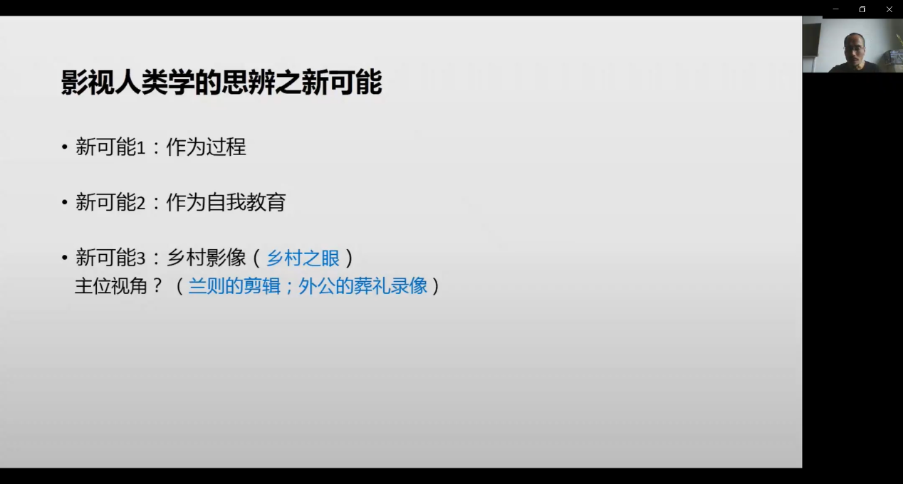 5月12日下午,必赢“2022年度铸牢中华民族共同体意识教育项目——铸牢中华民族共同体意识学术讲座(研讨会)之二”在线上举行,本期讲座特邀云南大学民族学与社会学学院人类学博物馆、影视人类学实验室副研究员陈学礼为主讲人,主题为“影视人类学是什么”。此次讲座采用线上方式,民族学学科的教师和学生聆听学习,会议由民族学专业副教授狄良川主持。