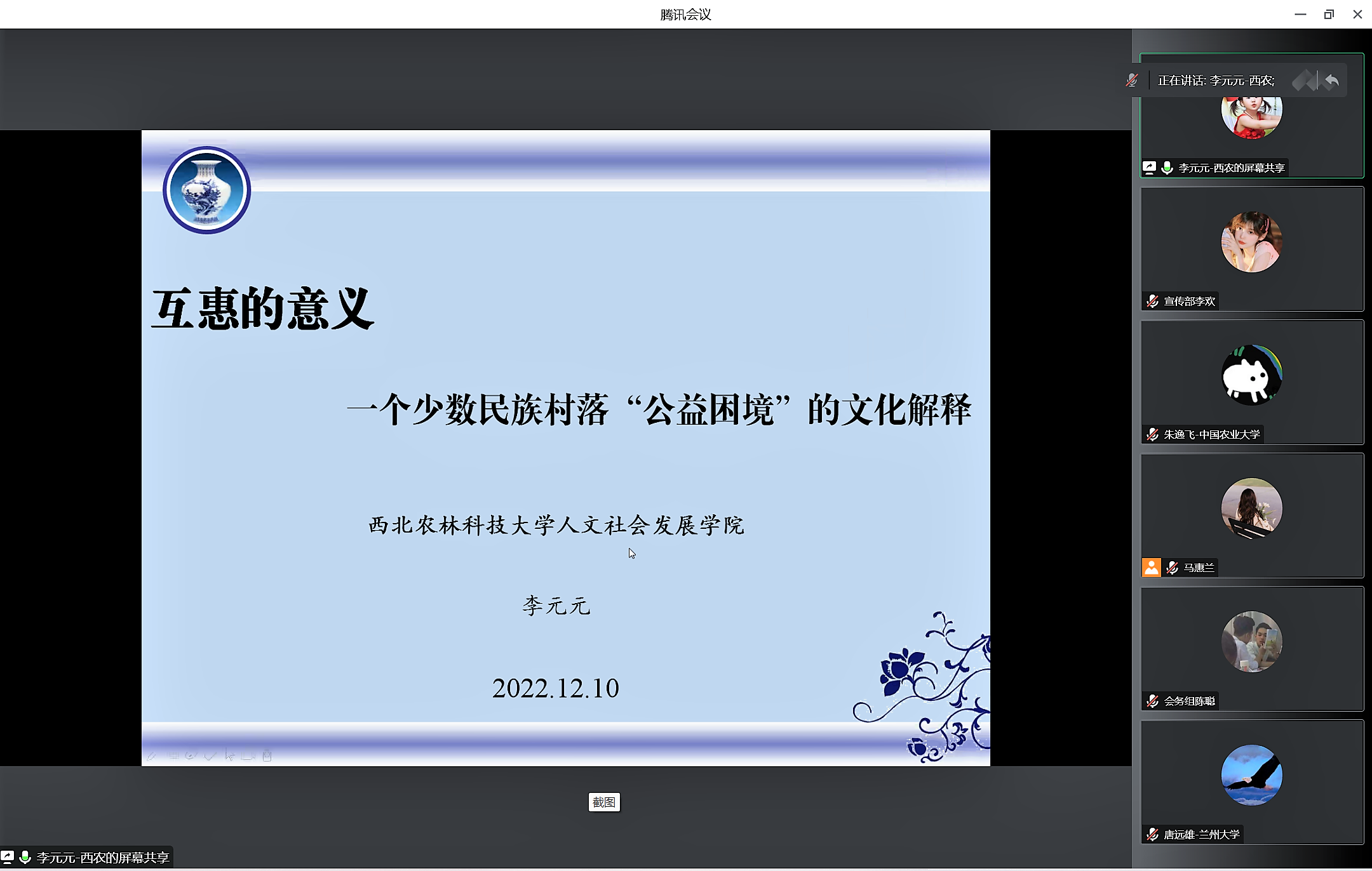 专题一分论坛由北方民族大学马克思主义学院副院长、教授马惠兰主持,兰州大学哲学社会学院哲学系教授、硕士生导师、社会学系主任唐远雄与谈,中国农业大学人文与发展学院教授臧雷振、西北农林科技大学人文社会发展学院教授李元元、西华师范大学硕士研究生宋静、西北农林科技大学人文社会发展学院副教授豆书龙、西北师范大学社会发展与公共管理学院讲师巨浪和西北农林科技大学人文社会发展学院讲师谢勇参与报告。