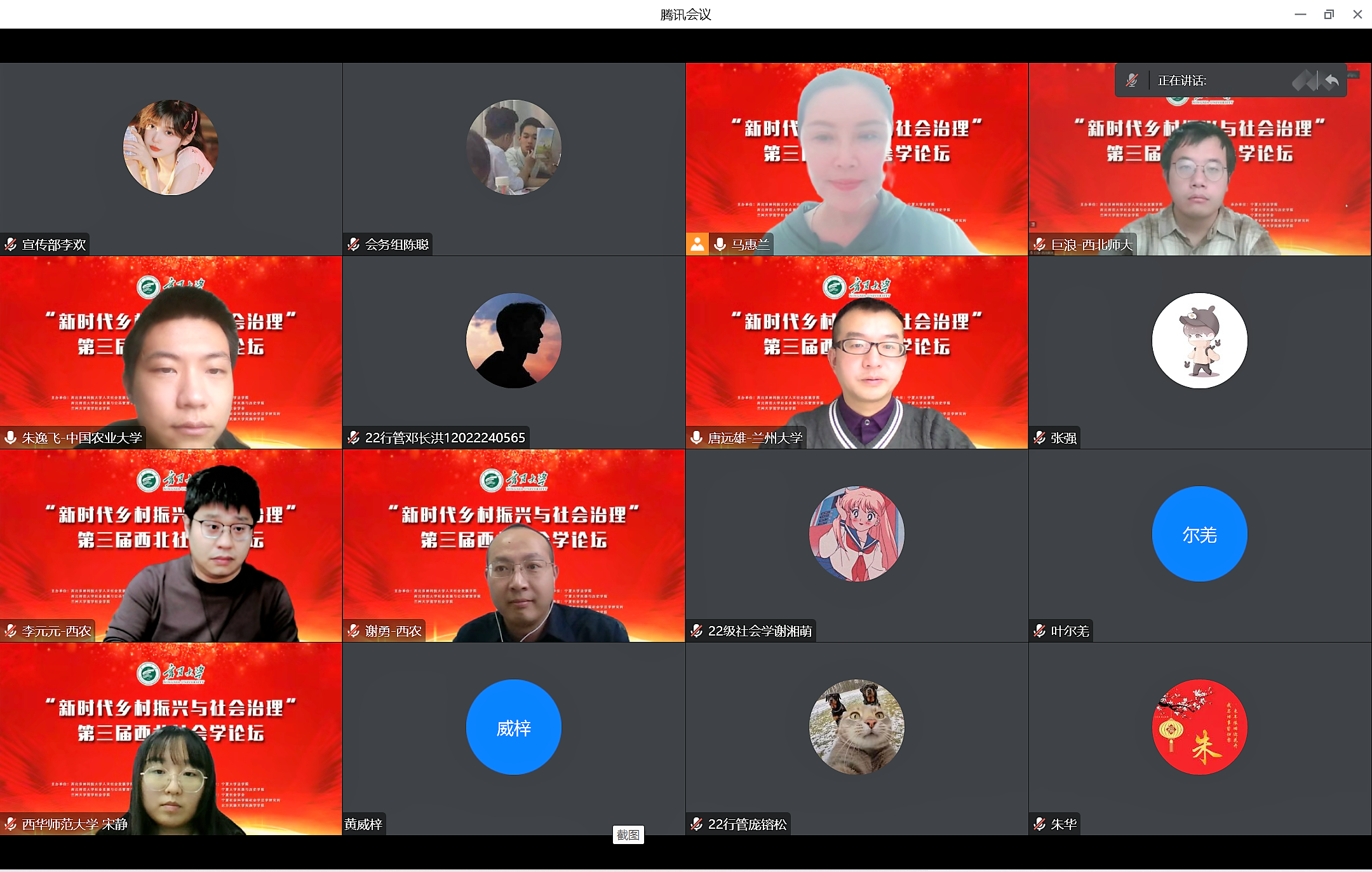 为进一步探讨中国社会发展新阶段中的乡村振兴和社会治理问题。12月11日下午,437437必赢国际网址于线上举行了“新时代乡村振兴与社会治理”第三届西北社会学论坛。此次论坛以平行论坛的形式召开,共包含三个专题。