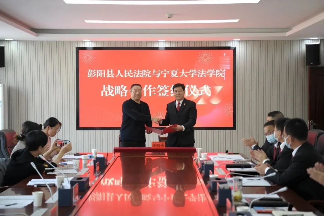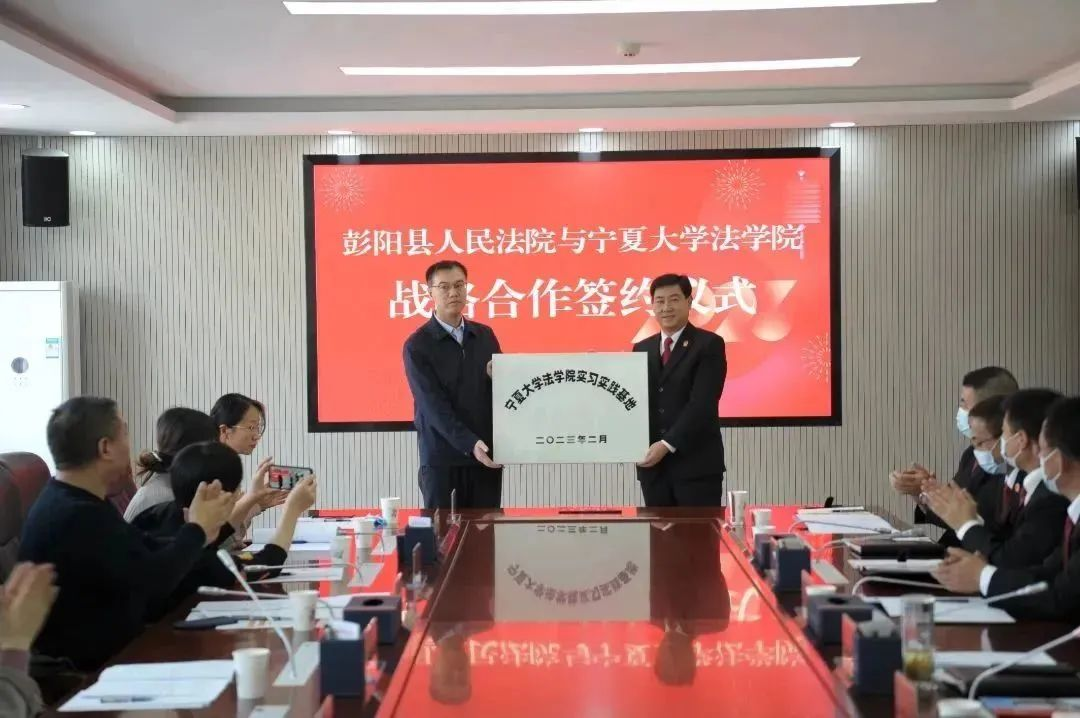 2月2日下午,437437必赢国际网址与彭阳法院举行战略合作签约仪式,为彭阳法院授牌“437437必赢国际网址实习实践基地”。437437必赢国际网址党委书记李治涛、院长吕耀军、副院长胡世恩、系室负责人及教师代表,彭阳法院党组副书记、副院长武应龙等领导及各部门负责人参加仪式。仪式由彭阳法院党组成员、副院长米占廷主持。