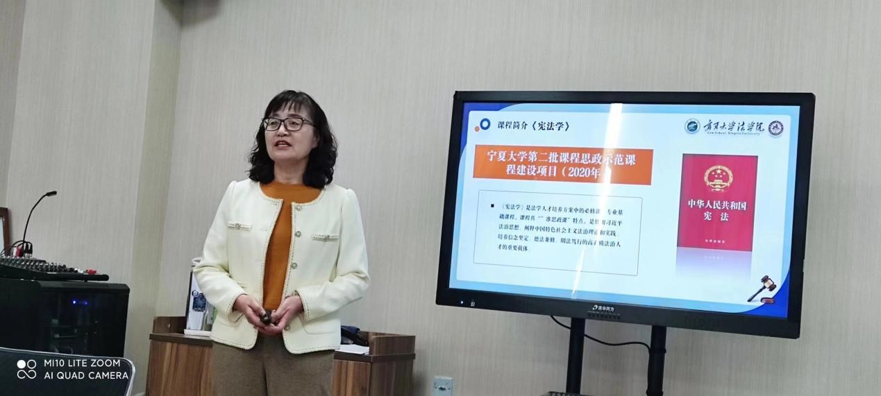 白利萍从《宪法学》示范课程及教学团队建设的探索与实践、课程思政元素的融入、教学方式和教学方法的运用以及育人效果等五个方面做了介绍。她认为,第一,《宪法学》在法学专业课程中具有“准思政”课的特点,新教学大纲须明确课程在价值塑造、知识传授和能力培养“三位一体”的教学目标,科学凝练思政元素,全面构建课程思政内容,并将其有机融入整个课程体系中。第二,课程思政教学改革的核心目标是注重培养学生的宪法信仰,加深大学生对中国特色社会主义的认同,树立社会主义核心价值观。第三,课程要解决的一个焦点问题,就是要从中西方价值观念的冲突和博弈中,深刻领会党中央治国理政的新理念、新思想、新战略,坚定“四个自信”,对我国宪法文本的规范内容和法治实践新成果进行阐释和表达,引领学生运用宪法思维为我国法治实践中的问题提供解决方案,达到德法兼修的育人效果。她以“我国的国家性质”为例,深入分享了她对该教学单元思政元素的思考及运用“问题链”导向法融入思政元素的教学体会,在育人效果方面,介绍了《宪法学》课程建设两个教学周期以来,为培育学生的法治实践能力,灵活采用线上与线下混合式教学模式、开展宪法宣誓、主题实践性教学活动等强化过程性考核评价,优化和完善宪法学课程的整体考核体系的探索。最后,她表达了对如何构成课程思政的考核评价的反思,认为思政育人并不局限于一堂课一门课,应贯彻“大思政”思维,凝聚教学团队力量和深化专业课程思政研讨,创新协作育人机制,同向发力,推动专业教育与价值塑造收到润物细无声之效。