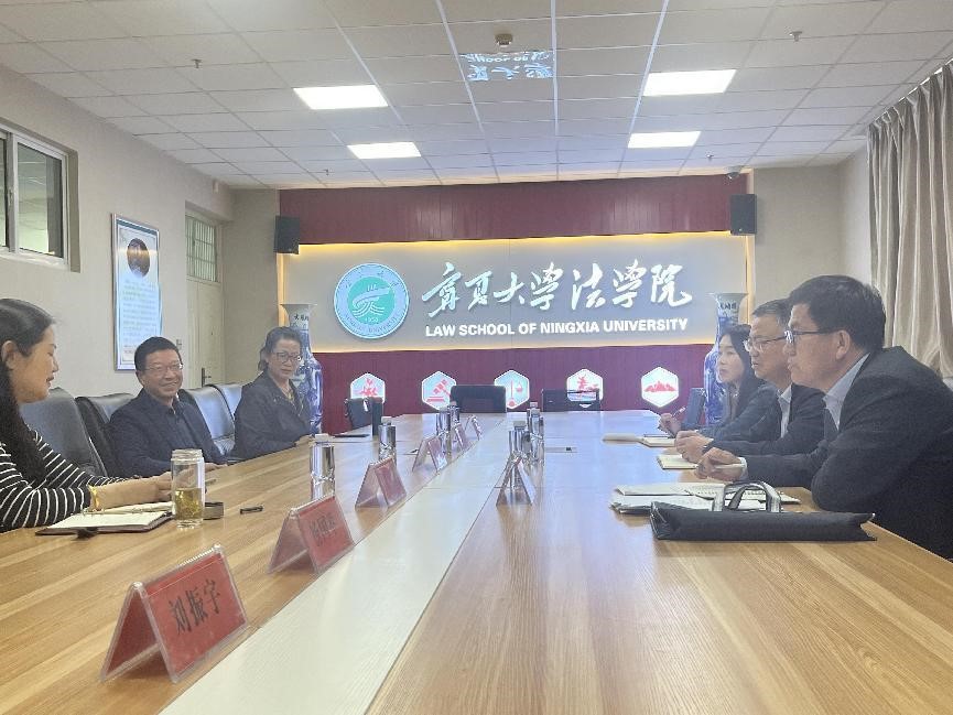 2023年5月8日下午,自治区人大常委会法工委主任冯自保、办公室主任马奇贵、工作人员苏潇贇一行至必赢开展基层立法联系点工作调研。437437必赢国际网址院长吕耀军、副院长刘振宇、戴新毅教授、刘芳教授、滕明荣教授、杨国举教授参加了调研座谈。