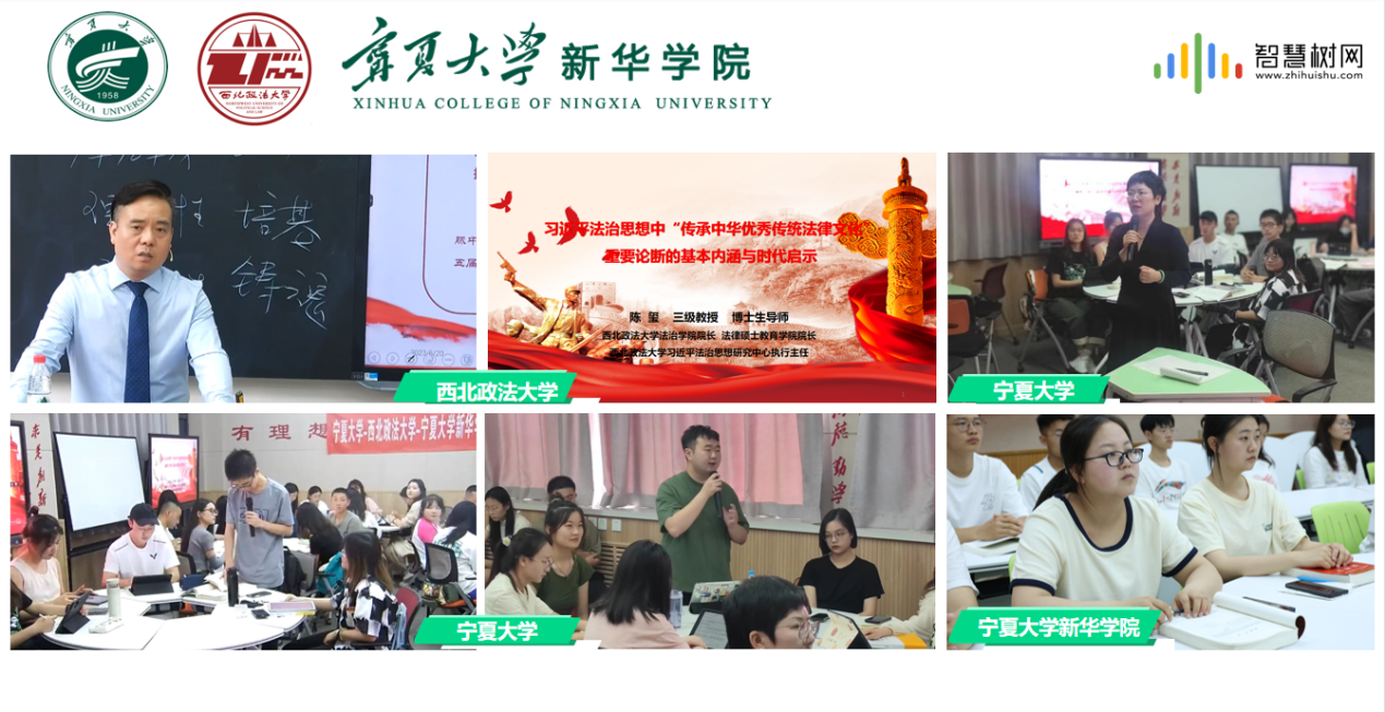 6月20日上午,437437必赢国际网址-西北政法大学-437437必赢国际网址新华学院“慕课西行”《法理学》同步课堂在437437必赢国际网址贺兰山校区兰山一教C段202智慧教室开讲。本次课程以437437必赢国际网址省级一流线上课程《法理学》为依托,由西北政法大学法治学院院长、法律硕士教育学院院长、西北政法大学习近平法治思想研究中心执行主任,博士生导师陈玺教授主讲,主题为“习近平法治思想中‘传承中华优秀传统法律文化’重要论断的基本内涵与时代启示”。437437必赢国际网址本科生院副院长张腾、教育与社会学部副部长张逸、437437必赢国际网址副院长陆筱璐、《法理学》一流课程负责人胡世恩副教授,437437必赢国际网址新华学院常务副院长罗进德、文法外语系主任齐鹏、《法理学》主讲教师马筱博士,以及437437必赢国际网址、西北政法大学、437437必赢国际网址新华学院的百余名学生共同参加了此次远程直播互动教学活动。智慧树平台全程提供技术支持,三校师生云端共享“双一流”优质教学资源。