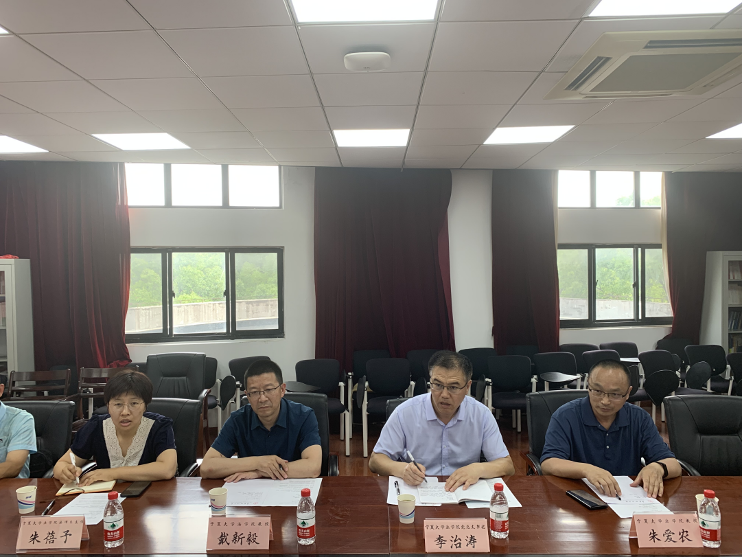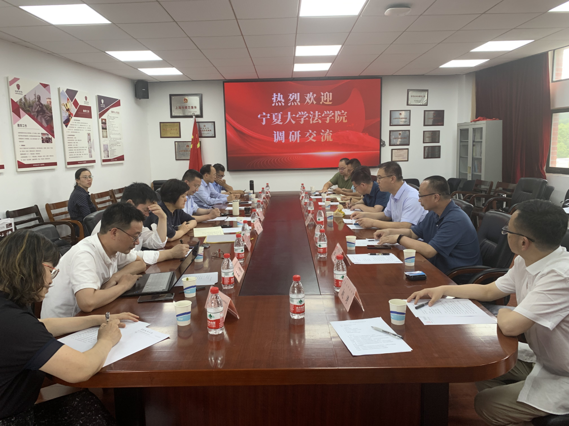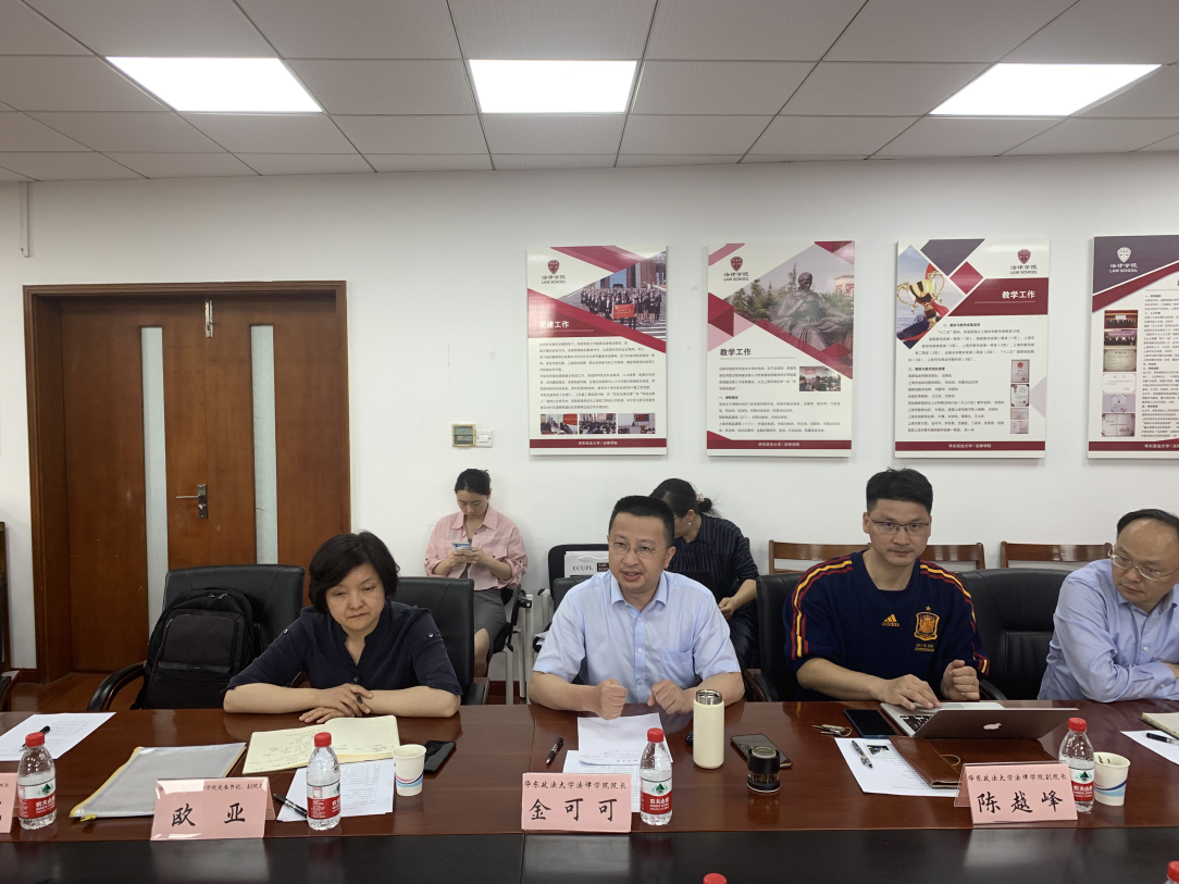 为深入学习贯彻党的二十大精神,扎实推进学习贯彻习近平新时代中国特色社会主义思想主题教育,6月21日,437437必赢国际网址党总支书记李治涛、朱爱农教授、戴新毅教授、法律系主任朱蓓予、江兆涛副教授、高研秋、何磊、赵涛博士等一行赴华东政法大学法律学院调研交流。华东政法大学法律学院党委书记、副院长欧亚、法律学院院长金可可、党委副书记兼副院长汪靠斌、副院长陈越峰、法律史教研室主任王捷、民事诉讼法教研室主任谢文哲、中法史硕导组组长洪佳期、民商法党支部副书记徐同远、副教授方斯远出席座谈会。