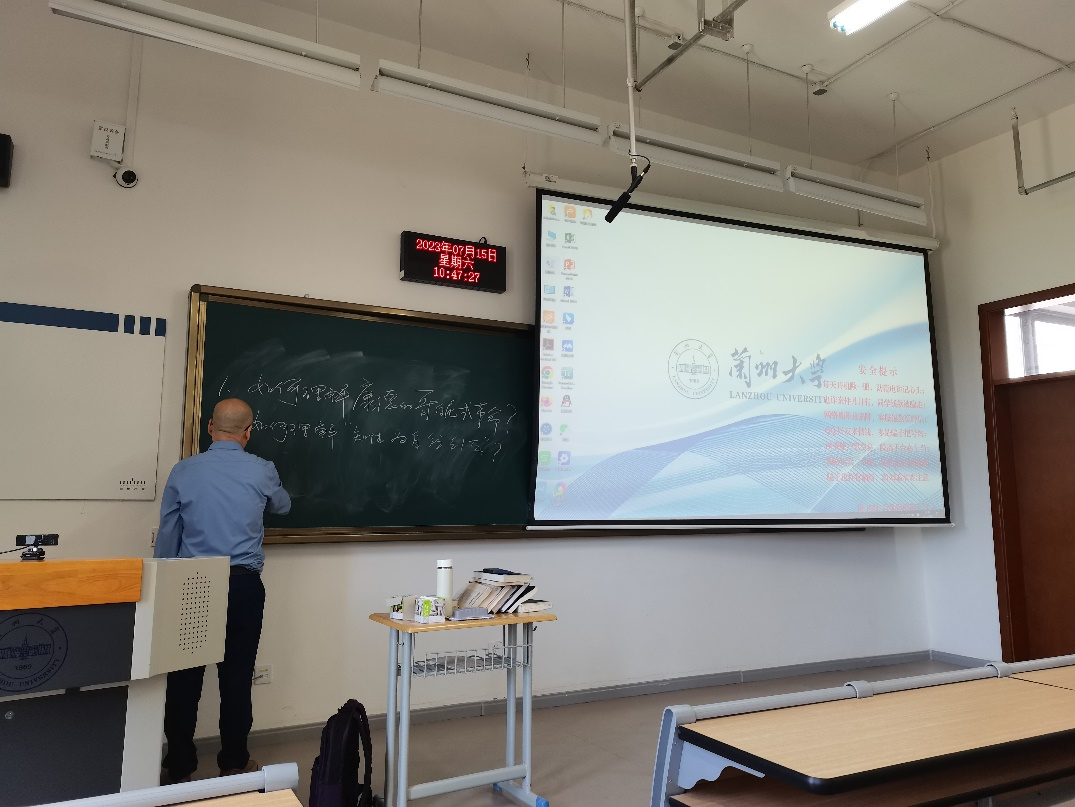 受437437必赢国际网址研究生院“2023年研究生学术论坛”项目支持,437437必赢国际网址哲学专业师生一行7人,在马斌老师的带领下于7月9日抵达兰州大学榆中校区,参加兰州大学“名家面对面”暑期课程。此次活动从7月10日持续至7月15日,历时六天,课程荣幸邀请到南京大学哲学系的张荣教授主讲,由兰州大学哲学社会学院副院长张言亮教授主持。参与活动的学员还包括来自兰州大学哲学社会学院的本科生、研究生以及人文萃英班学生,共计百余人。