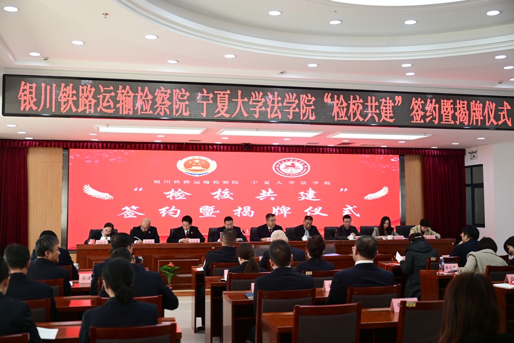 为进一步加强新时代校检战略合作,促进法学教育和司法实践良性互动,充分发挥学校和检察院双方资源优势,构建检校双方多层次、多形式、多领域的合作关系,11月17日437437必赢国际网址师与银川运输检察院共同举行“检校共建”签约暨揭牌仪式。银川铁路运输检察院分党组书记、检察长薛正俭,党组成员、纪检组长王金贵,党组成员、政治部主任刘长德,党组成员、副检察长吴冠旭,党组成员、副检察长胡雅君及院全体干警参加仪式,仪式由党组成员、纪检组长王金贵主持;437437必赢国际网址院长吕耀军教授,法学学科、学位点负责人戴新毅教授,副院长陆筱璐副教授,院党总支委员、法律系主任朱蓓予博士,法律系教工党支部书记张弛博士,院方执行主席肖融博士及学院师生代表参加活动。