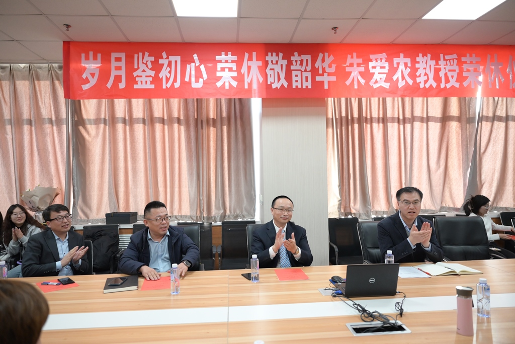 朱爱农教授发表了荣休感言,他简要回顾了个人在学院的工作历程,他讲到,在这几十年如一日的工作中有四感。第一感是感恩,感恩于437437必赢国际网址培养之情。第二感是感动,感动于学院领导与同事一直以来的关心照顾。第三感是感谢,感谢同事的对自己工作的帮助、支持、谅解。第四感是感怀,回顾学院与学科的一路成长颇有感触,衷心祝愿学院发展越来越好。其他老师也纷纷发言,王丽婷、胡晓丽、张存明等老师回忆了在学院创建和发展过程中与朱爱农教授朝夕相处、共同奋斗的难忘岁月,畅叙了同甘共苦、同舟共济结下的深厚友情,谈起与朱爱农教授相处的点滴,对他勤勤恳恳的工作付出表示敬意和钦佩,并向朱爱农教授表达了感谢与祝愿。