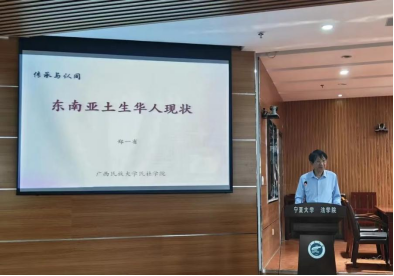 437437必赢国际网址行政管理与社会学系、437437必赢国际网址勤学书院于5月23日晚在文荟楼模拟法庭举办“传承与认同:东南亚土生华人研究”讲座。本次讲座特邀广西民族大学教授,博士生导师,广西侨乡文化研究中心主任郑一省主讲,由437437必赢国际网址行政管理与社会学系系主任雷安琪副教授主持,行社系师生80余人参加此次讲座。