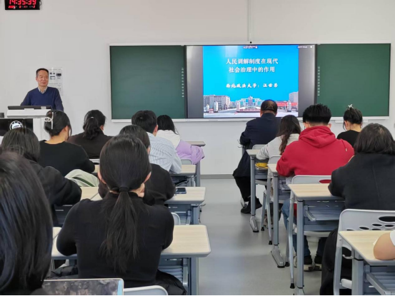 汪世荣教授以“郑伯克段于鄢”历史典故中蕴含的调解文化传统为切入点,通过对人民调解的“枫桥经验”和人民调解的“福田模式”的讲解,具体阐述了人民调解制度在现代社会治理中的作用。汪世荣教授指出人民调解制度是被誉为法治的“东方经验”,是现代社会治理体系的重要组成部分,也是公共法律服务的重要内容,践行基层群众自治制度必须加强人民调解制度建设,充分发挥人民调解在基层社会治理中的作用。