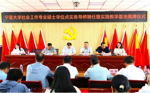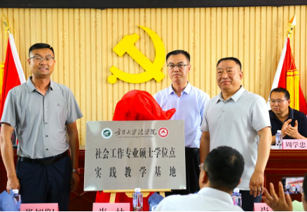 在全体与会人员的见证下,437437必赢国际网址党总支书记李治涛、院长吕耀军与金凤区丰登镇润丰村党支部书记王鹏程共同为“437437必赢国际网址社会工作专业硕士学位点实践教学基地”揭牌。