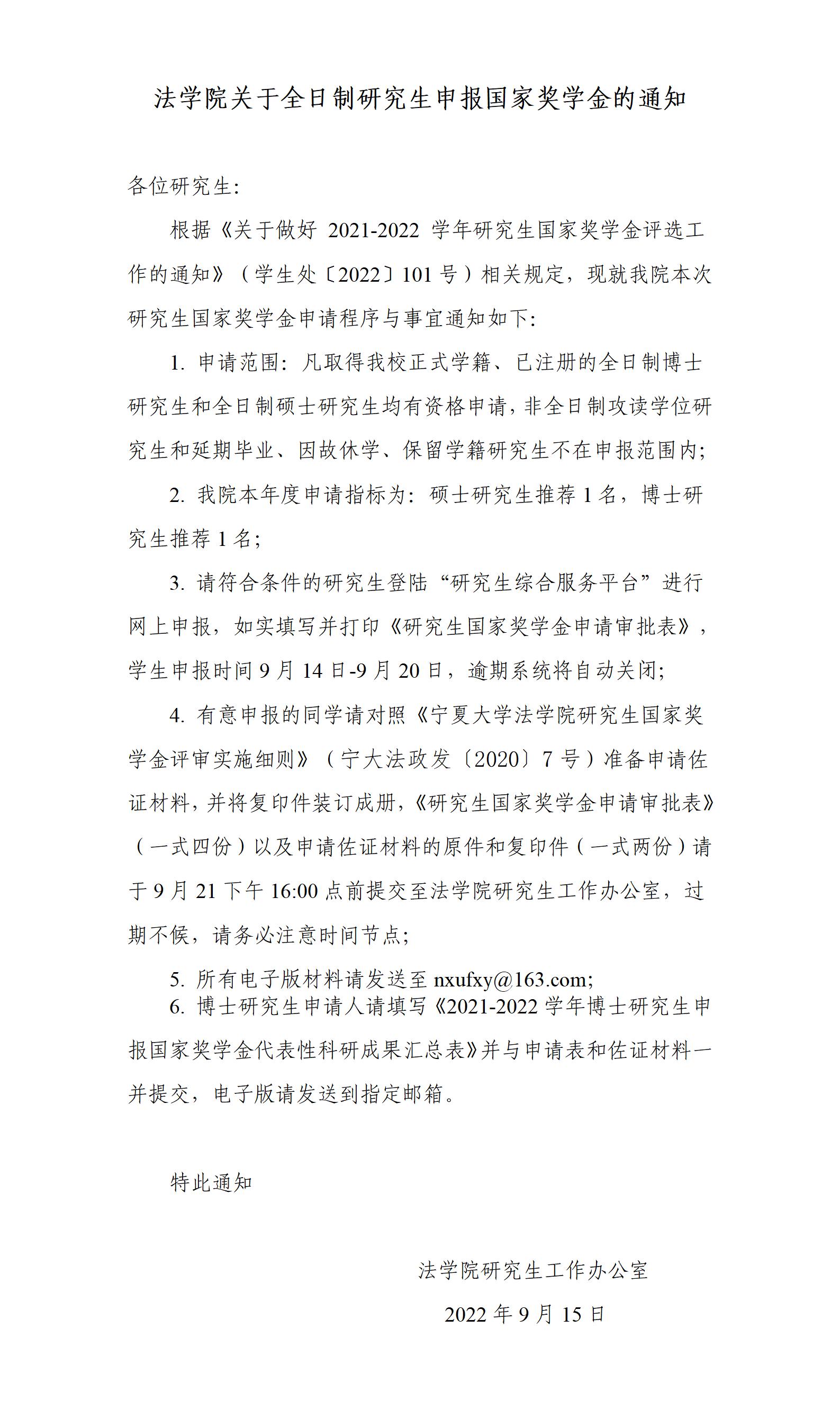 437437必赢国际网址关于全日制研究生申报国家奖学金的通知