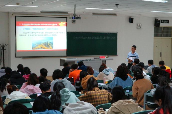 为扎实开展“不忘初心、牢记使命”主题教育,帮助党员发展对象和入党积极分子理解和把握当前我国所面临的基本形势,11月7日晚,辅导员赵南宁老师为政437437必赢国际网址分党校培训班学员作了“从供给侧和需求侧理解和把握我国社会主要矛盾发生的变化”专题报告,100余名培训班学员到场聆听。