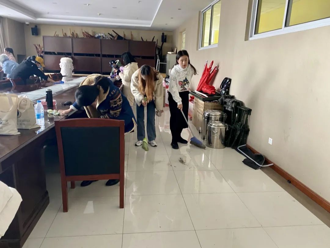 此次志愿服务实践活动分为三个区域开展,主要是对文荟楼八楼办公室、模拟法庭以及204教室进行彻底清扫。同学们带着各自的清扫工具,对布满灰尘的角落进行了全面细致的清扫。经过大家几个小时的努力,打扫过的区域整齐有序。在此次清扫活动中,大家分工明确,相互配合,用实际行动践行着新时代大学生“奉献、友爱、团结、进步”的崇高价值观,激发了同学们爱党、爱校的热忱,以奉献小我,服务大我的主人翁精神,以小团体,大能量的实际行动展现了入党积极分子的良好形象,发挥了良好的先锋模范作用。
