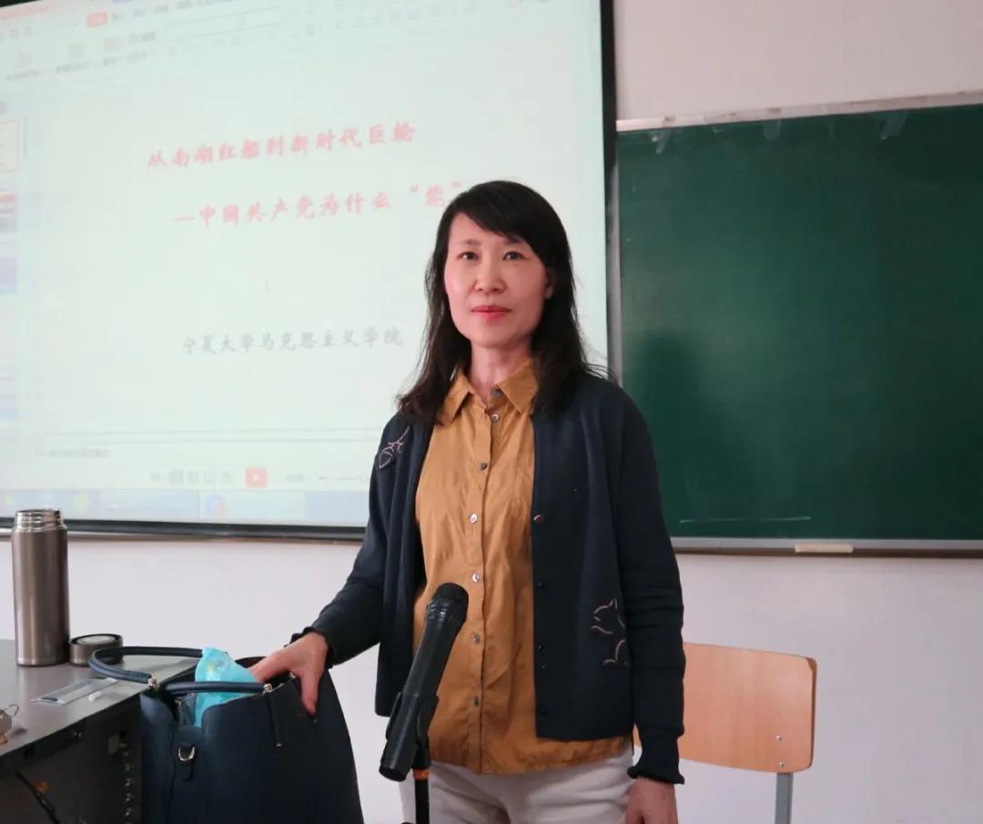4月21日下午,马克思主义学院王媛教授于文荟楼130教室讲授了一堂题为“从南湖红船到新时代巨轮——中国共产党为什么‘能’”的党课。437437必赢国际网址党委书记潘瑞主持了讲座,437437必赢国际网址教师及学生骨干、食品与葡萄酒学院入党积极分子及发展对象200余人聆听了党课。