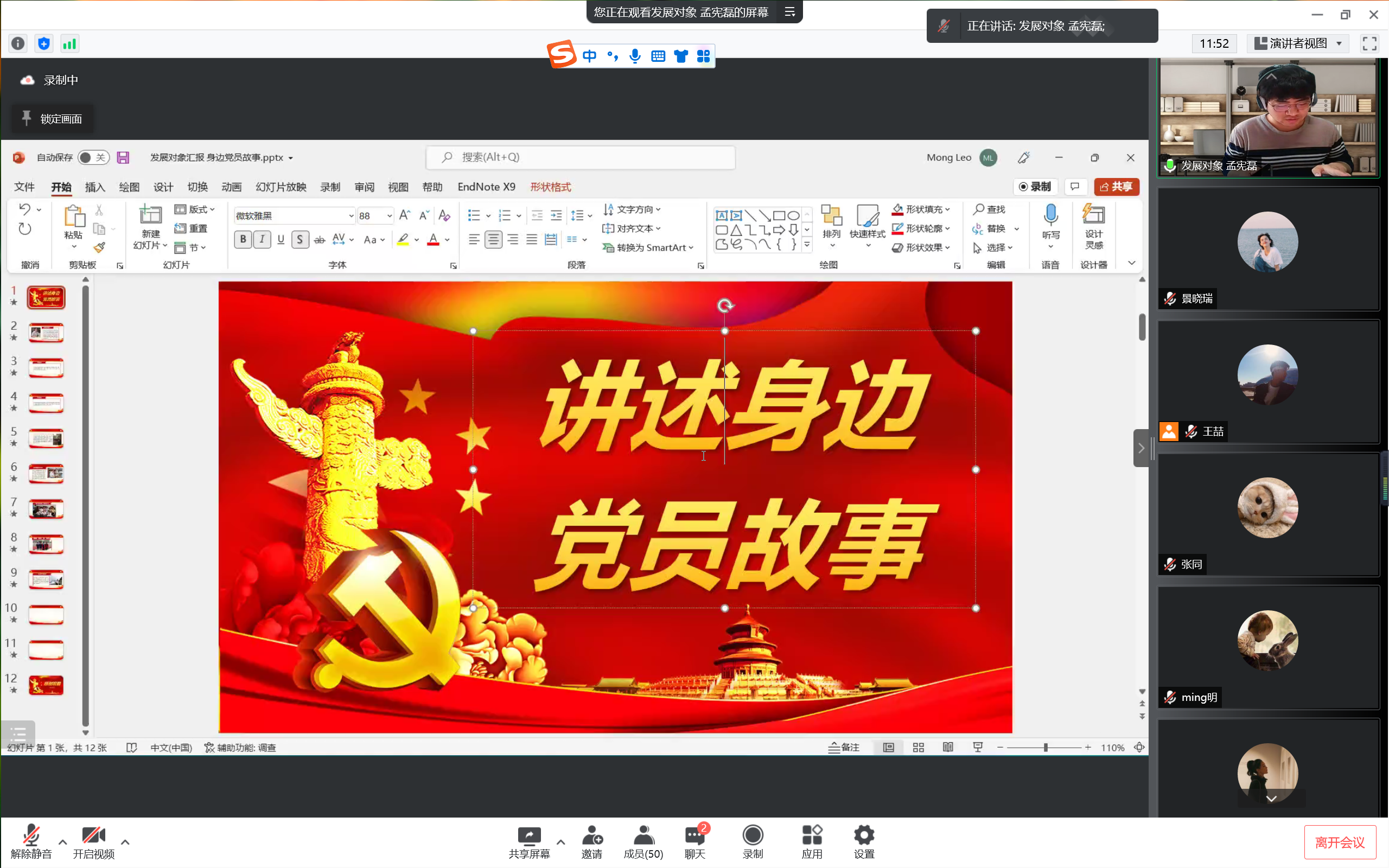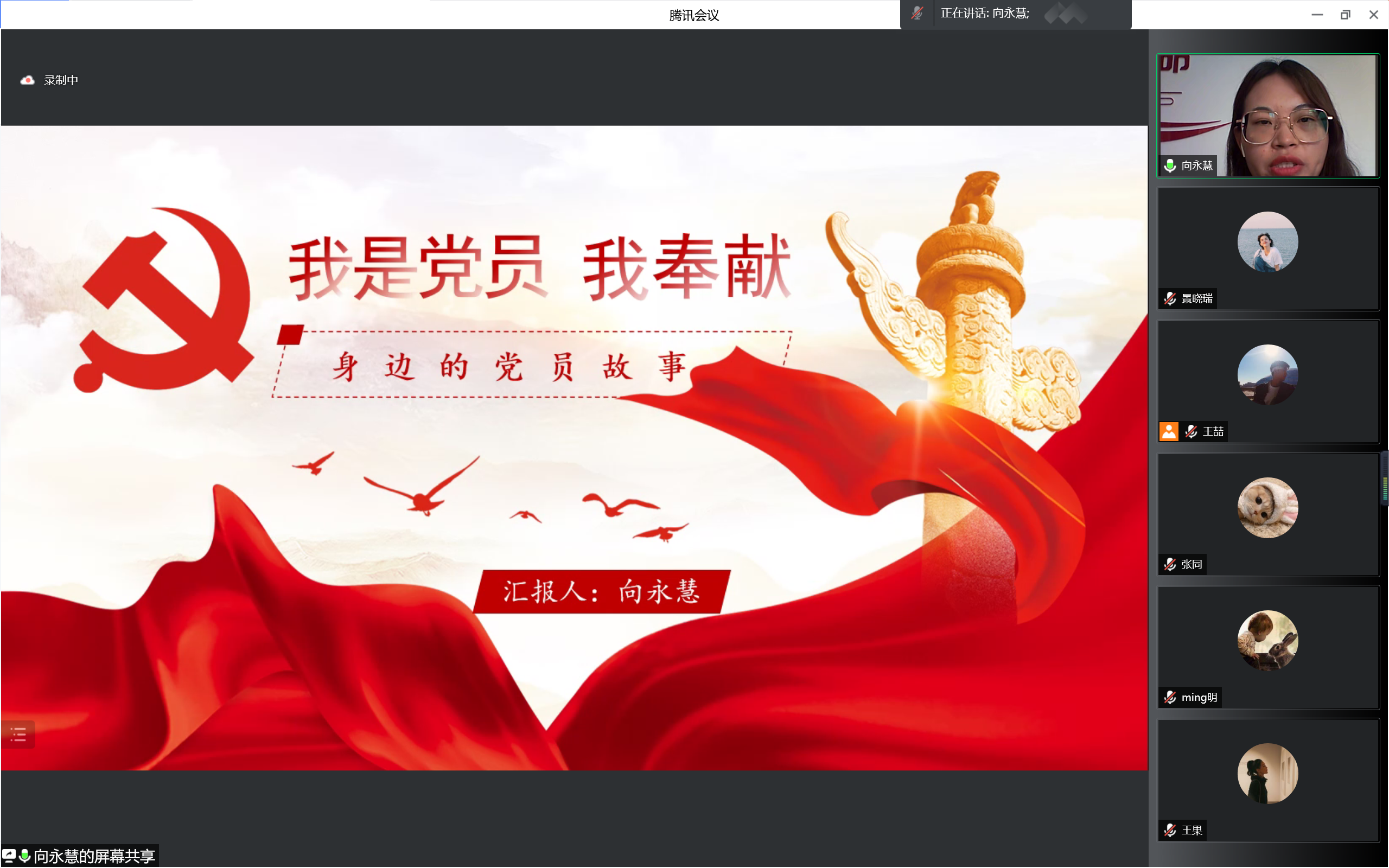 本次考察以成果展示的方式进行,发展对象自行选择一位身边的党员同志,讲述他们的优秀事迹,思考作为一名共产党员如何在平凡的岗位上体现共产党员的先进性,做出不平凡的事迹。支部五位发展对象逐一进行了汇报。