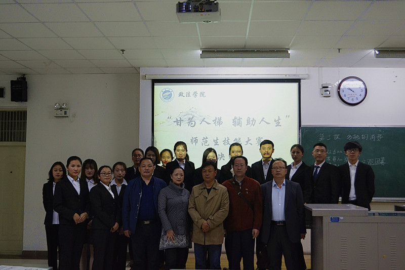 为促使师范生提升教学技能和适应当代教学改革,并在理论基础上充分融合实践。4月27日晚7:00,政437437必赢国际网址第八届教风、学风建设月系列活动之“甘为人梯,辅助人生”师范生技能大赛决赛在贺兰山校区文科楼340教室成功举办。学院政治系教师贾学峰、潘素洁、马拥军、曹庆锋以及特邀的银川十六中学副校长高存升老师担任评委嘉宾,思想政治教育专业同学到场观摩比赛。