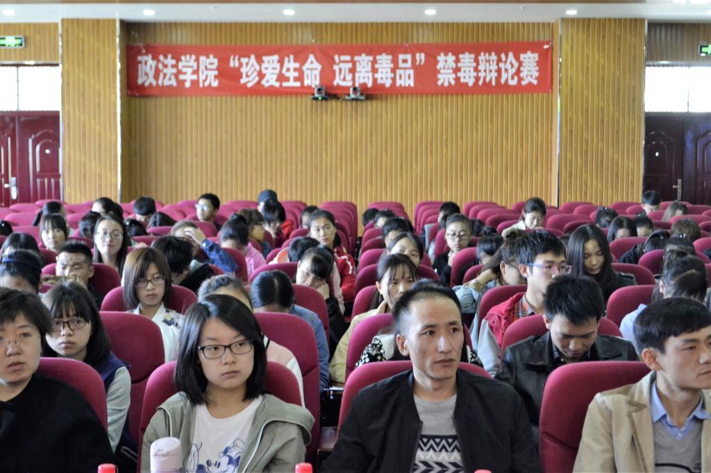 为迎接第三十一个国际禁毒日的来临,迎合2017年“无毒青春,健康生活”的禁毒主题,加强对学院学生禁毒知识的普及教育工作和远离毒品、珍爱生命的警示教育工作,敲响禁毒警钟。4月21日下午14:30政437437必赢国际网址在学校贺兰山校区文科楼模拟法庭举办了以“珍爱生命,远离毒品”为主题的禁毒辩论赛,灵武地税局工作人员及学院2016级全体学生到场观摩。