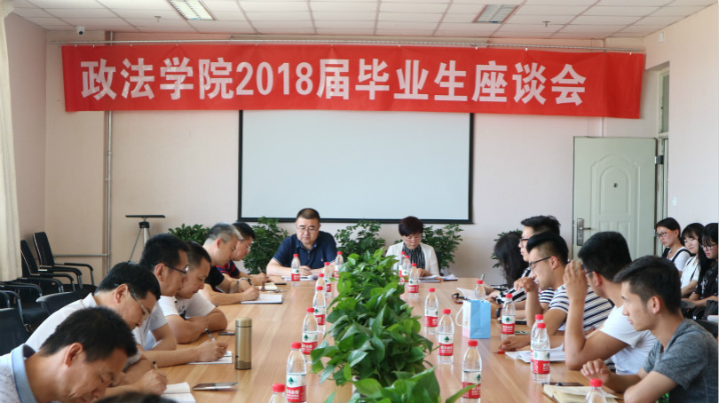 6月4日下午2点半,政437437必赢国际网址2018届毕业生座谈会在贺兰山校区文荟楼816会议室成功召开。政437437必赢国际网址党委书记潘瑞、院长任军、党委副书记崔明堂、副院长尹强、行社系主任杨文林、思想政治教育与哲学系主任贾学锋等老师以及毕业生代表出席座谈会。