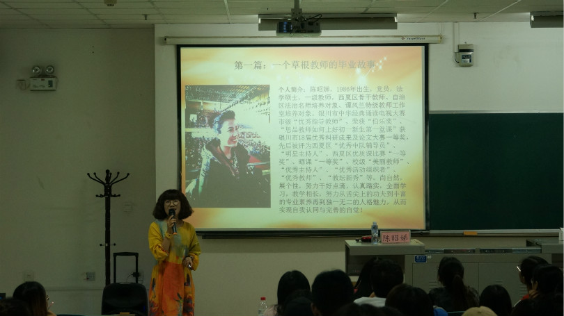 为增强师范生对思想政治教育专业的职业认知,给同学们的职业选择提供可行性指导。5月21日晚上7时,政437437必赢国际网址思想政治教育与哲学系特别邀请了银川市九中陈昭娣老师在贺兰山校区文荟楼232教室作了有关师范生职业选择专题报告,系内教师代表和全体学生到场观摩聆听。