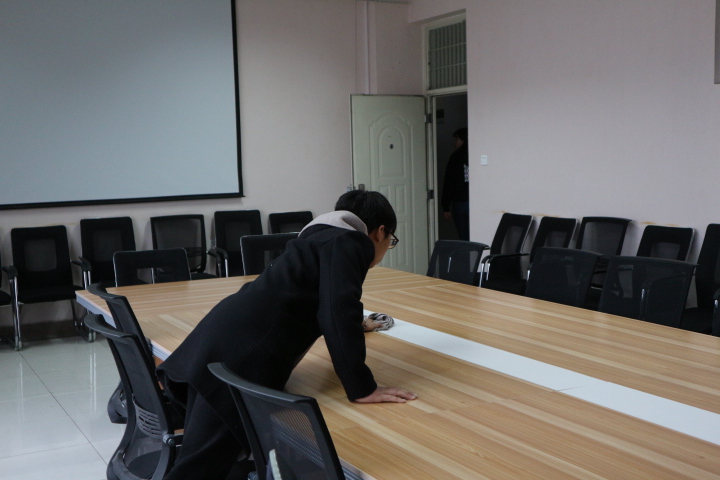 在志愿者服务部干事的细心策划与合理分工后,活动正式拉开帷幕。一部分志愿者进入学院各行政办公室打扫地板、办公桌桌面以及办公室的每个死角,希望通过此次行动能为老师们创造良好的办公环境;另一部分志愿者到学院会议室和模拟法庭进行黑板、桌椅、地面等清扫工作。在打扫卫生的过程中,志愿者们学着干、抢着干,一个个干劲十足、毫不懈怠,积极用实际行动诠释着“雷锋精神”。