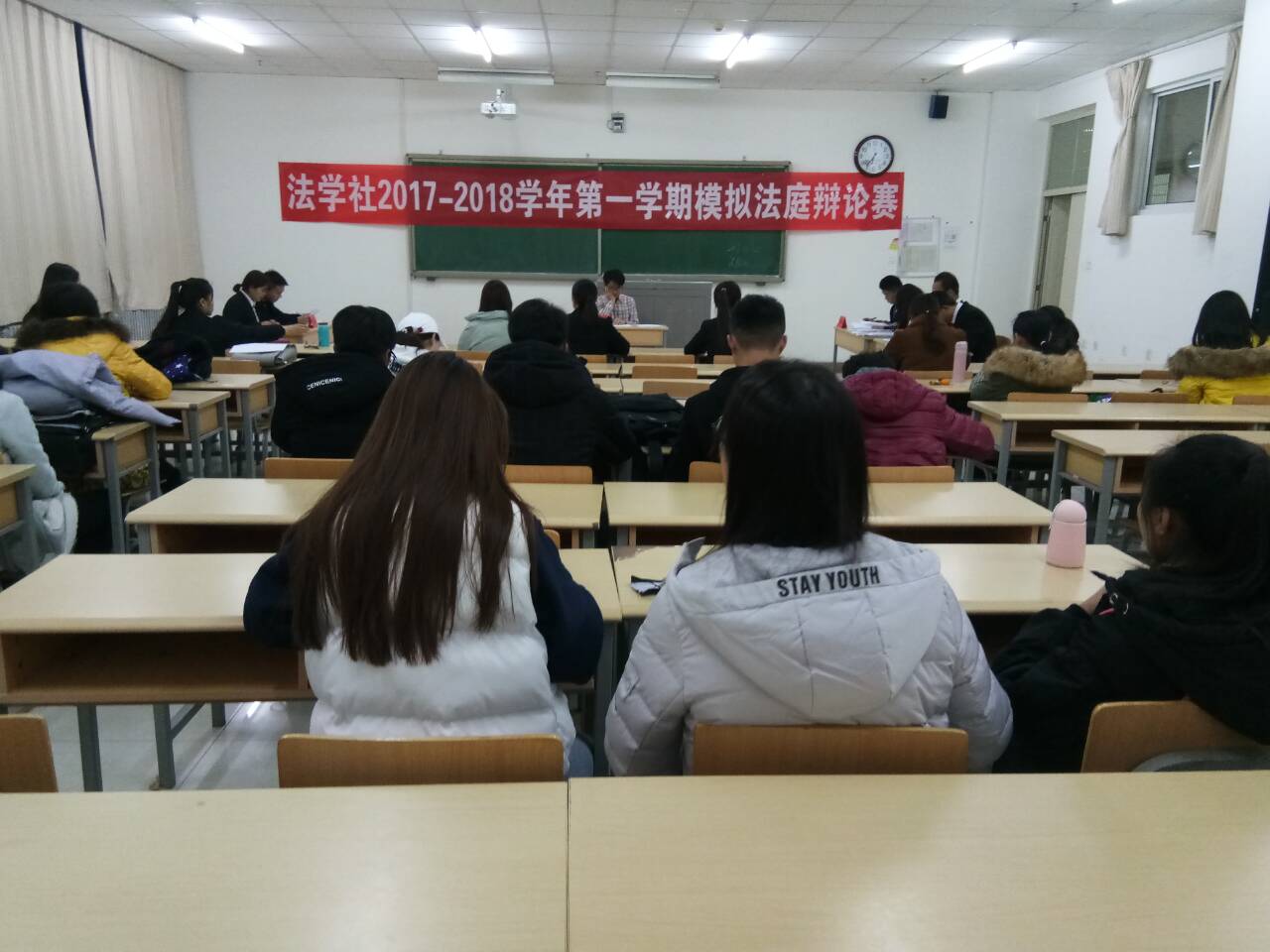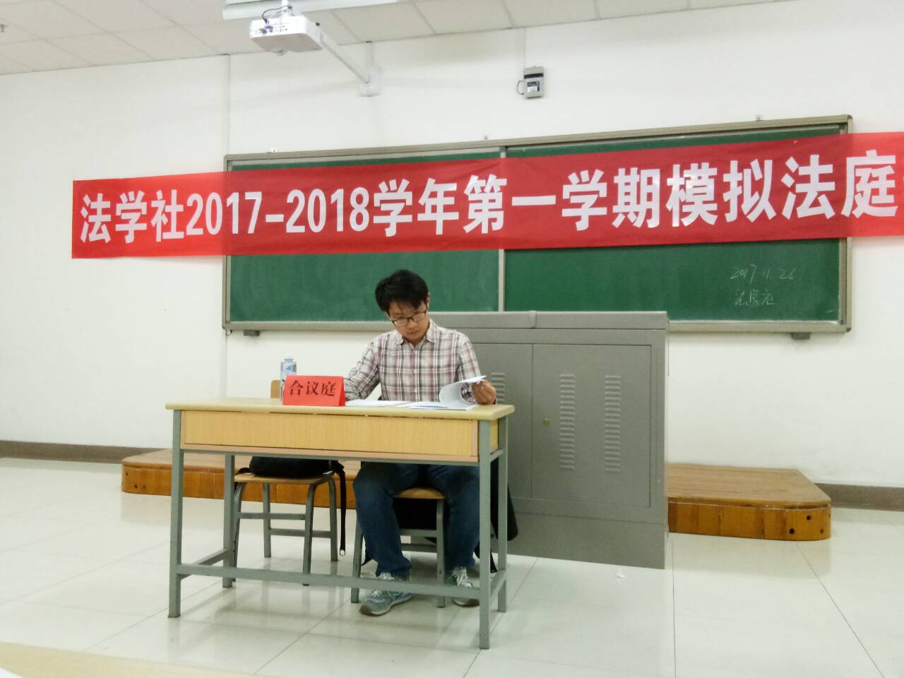 为激发法学专业学生对专业实务能力培养的学习兴趣,提升法庭辩论能力。11月26日晚18:30,由政437437必赢国际网址法学社承办的“模拟法庭辩论赛”在贺兰山校区文荟楼401教室成功举办。法律系马浩丹老师受邀担任合议庭评审员,2017级法学专业全体同学到场观摩学习。