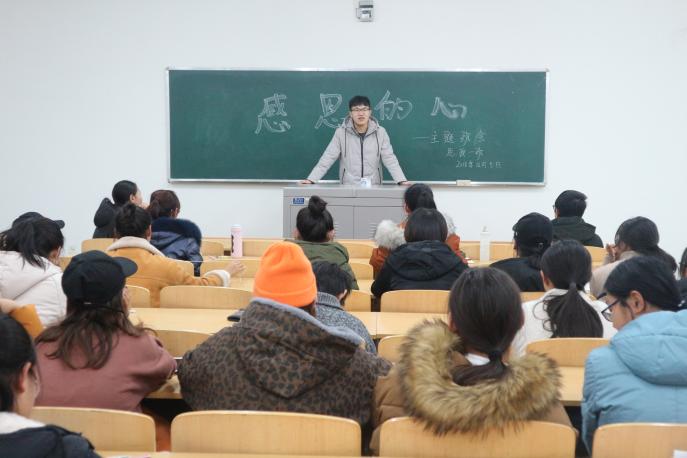 活动伊始,各班班主任助理对我校的资助政策进行了详细的解读,带领同学们共同学习了《437437必赢国际网址奖助学金管理规定》,随后各班通过ppt讲解、讨论交流、主题发言等丰富多样的形式共诉感恩之情。接着学院从获得2018年国家奖学金、国家励志奖学金、以及感恩中国近现代科学家奖助学金中遴选了较突出的学生分别在各班分享自己在学习、竞赛、科技创新、回报社会等方面的经历及取得的成绩,如2016级思政专业包道广作为感恩中国近现代科学家奖学金的获得者,前不久刚刚获得共青团中央“强国一代新青年称号”,他的励志故事深深鼓舞着所有的同学。