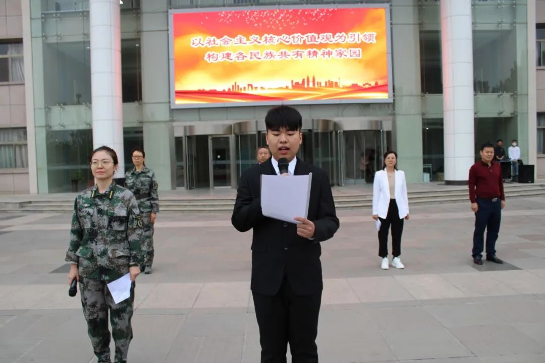 在庄严的国旗下,2020级法学专业的王鹤潼同学代表全体新生进行国旗下发言,她表达了初到宁大的惊喜激动,并呼吁同学们要努力学习、奋发图强、风雨不惧、前行不辍,以坚若磐石的信心,只争朝夕的劲头,成为有理想、有担当的大学生。2018级法学专业李后龙同学则向同学们分享了自己对于“大学”的理解,鼓励大家用积极的姿态保持进取之心,激发内在潜能,努力提升自己,争取全面发展。